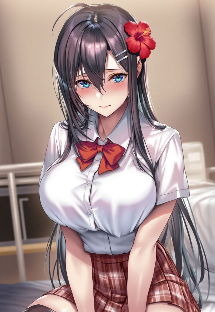 A girl called Nanase apologizes to the male teacher while her face is as red as the trademark red flower decoration on her head.